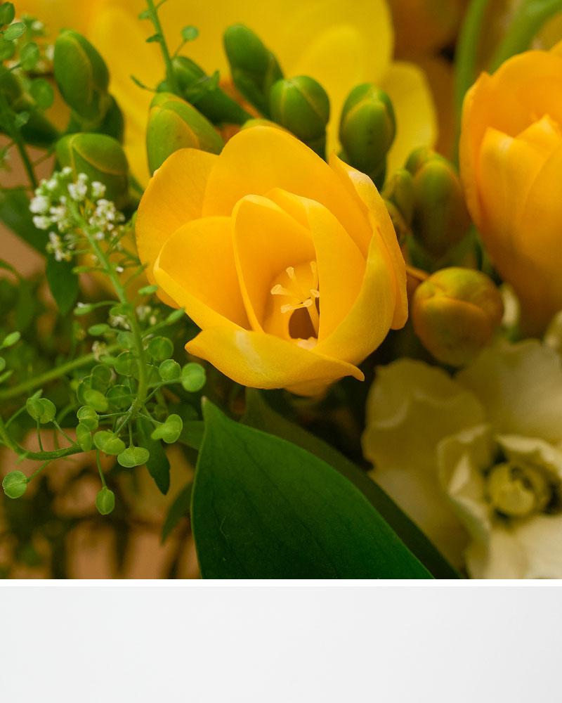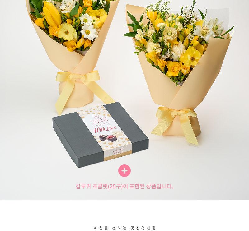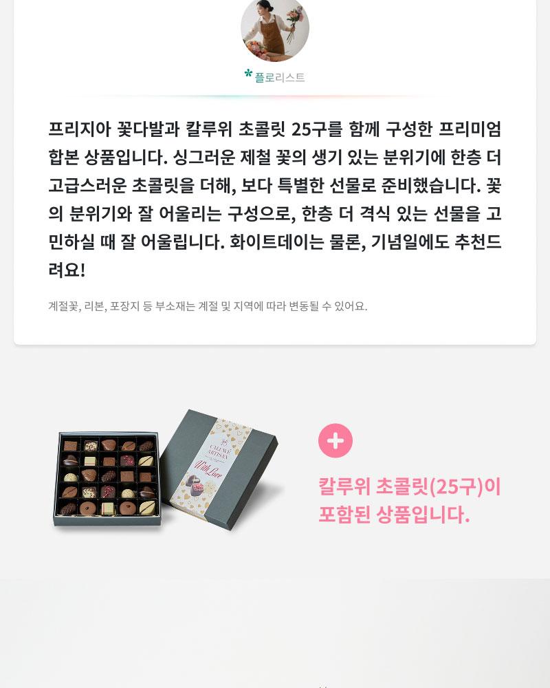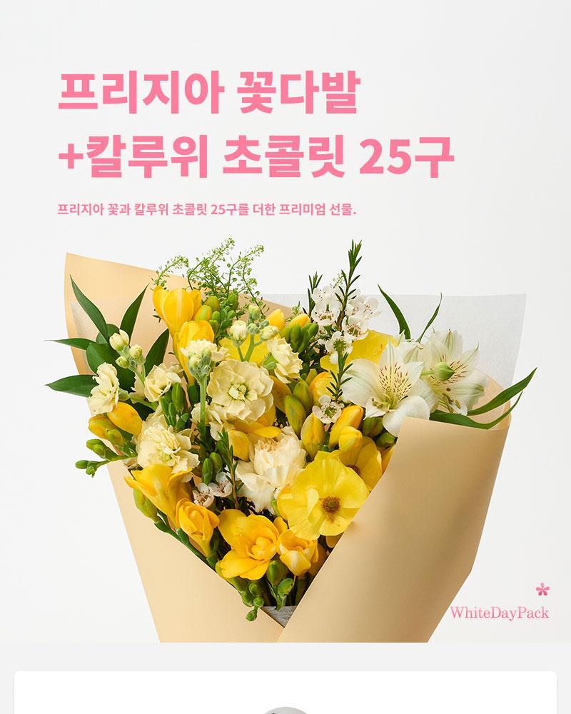 White Day Freesia Bouquet + Kaluvi Chocolate 25 pcs