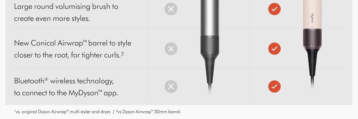 The latest Airwrap™ technology, Airwrap i.d.™ connects to the MyDyson™ app to create a personalised curling routine, according to your hair profile. A faster, easier way to achieve long lasting curls with no heat damage.¹