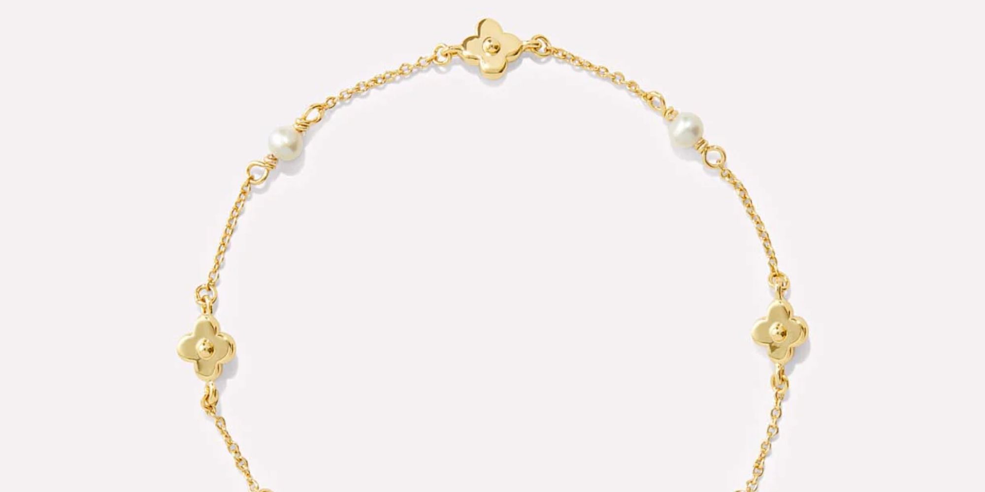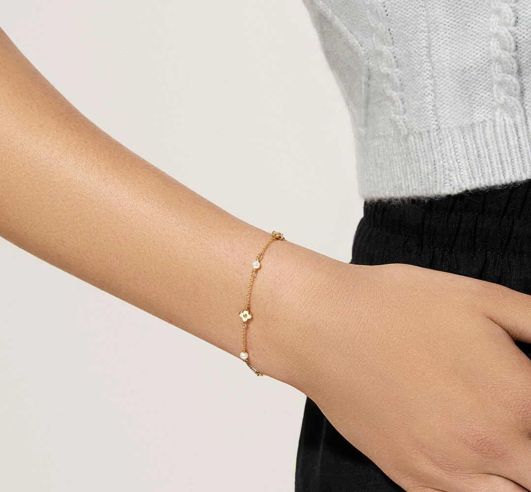 This flower bracelet is the perfect transitional piece from spring to summer. Designed by Hannah, this dainty 14K gold-dipped bracelet features delicate flowers and freshwater pearls, so it pays homage to both spring blooms and summer beaches.