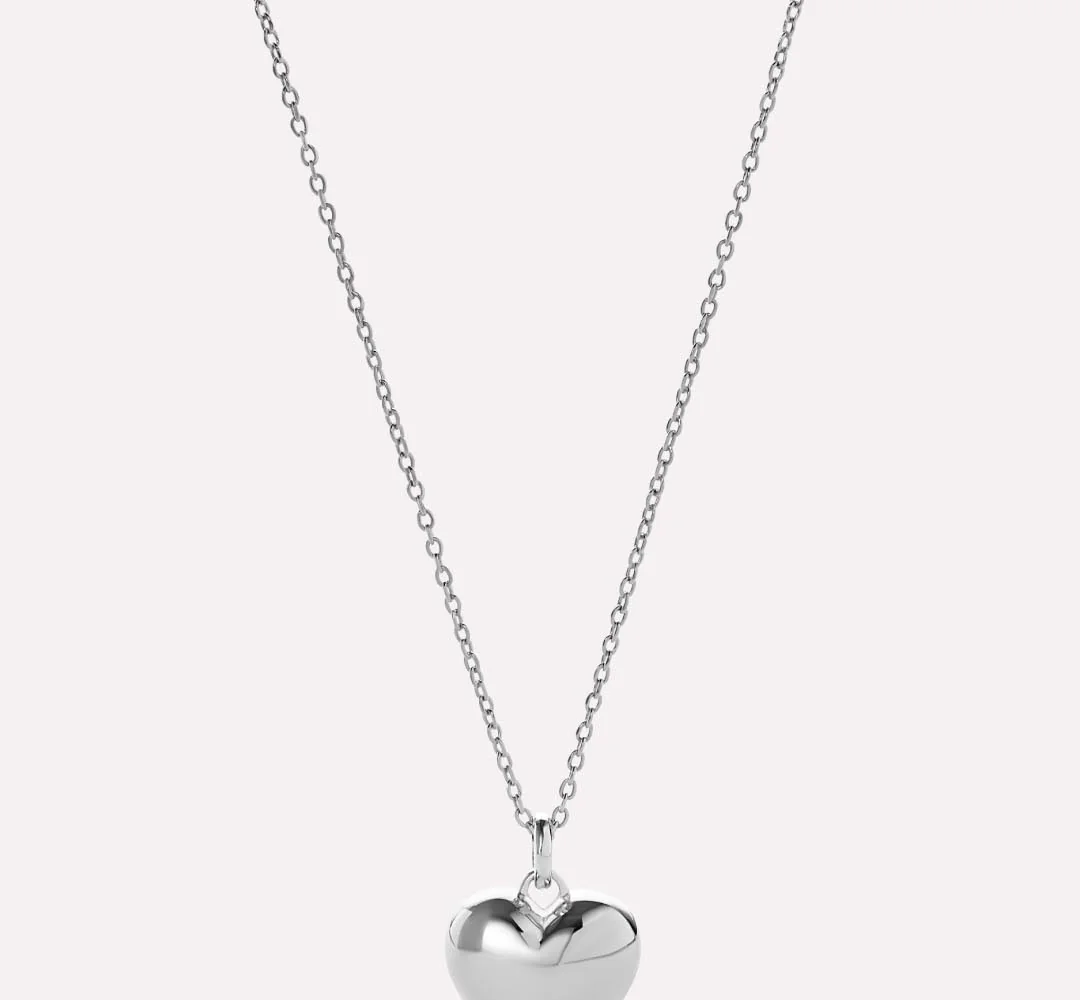 Sweet, sleek, and made to shine, this heart necklace is the kind of everyday piece that still manages to make a statement. With its polished finish and modern puffy heart pendant, it adds a charming touch whether worn alone or layered with other favorites. Finished in a high-shine metal and designed with just the right amount of whimsy, it's the perfect piece to fall for again and again.