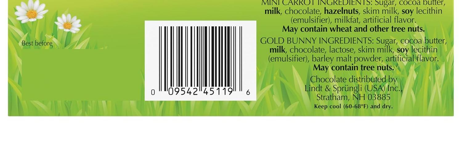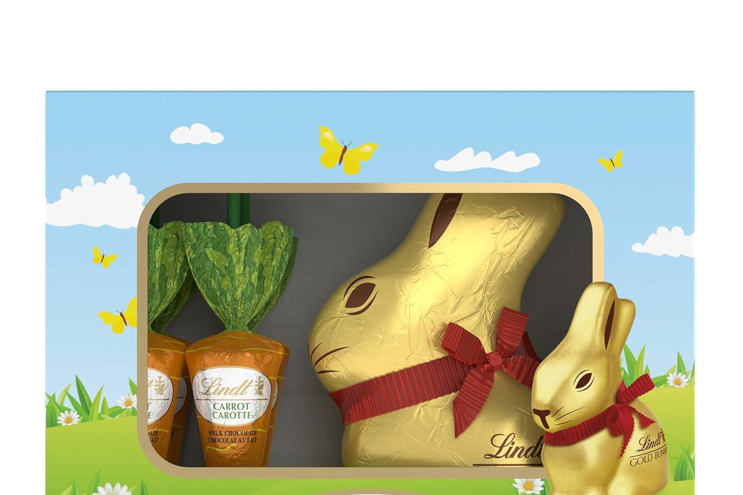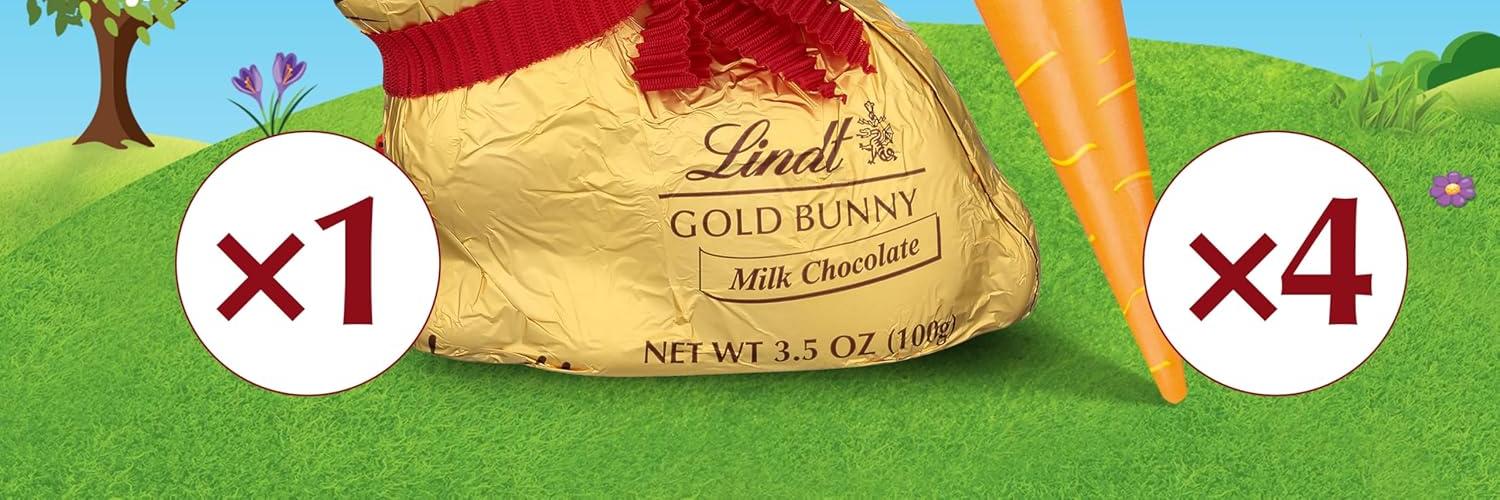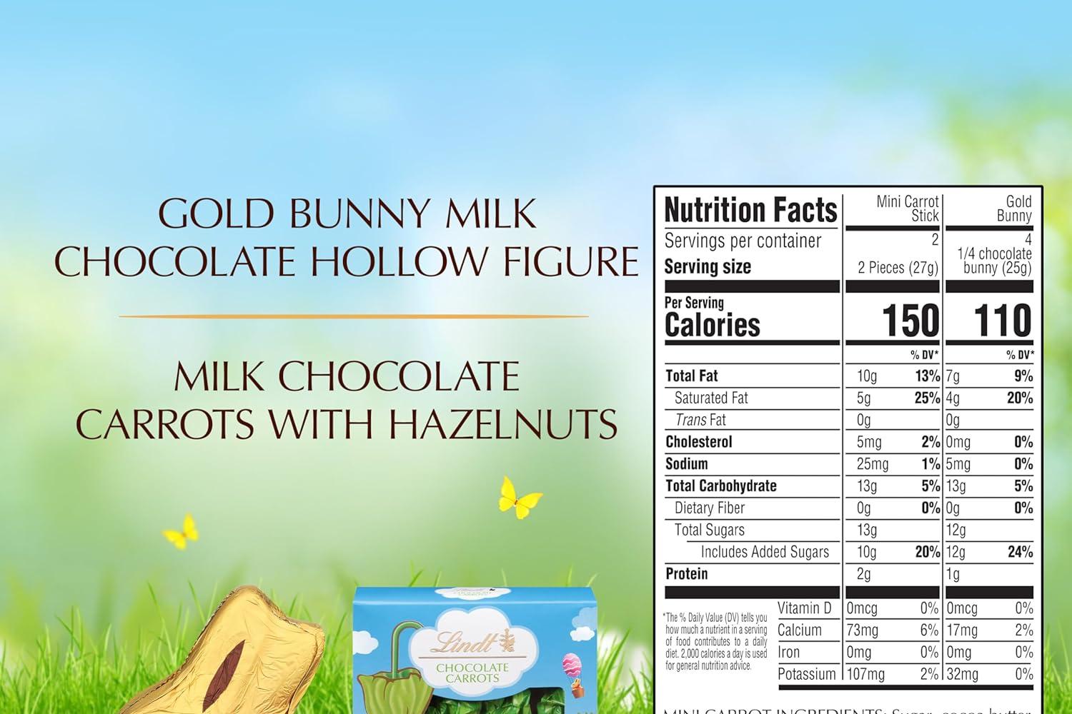 • Includes one Lindt GOLD BUNNY Milk Chocolate and four Milk Chocolate with Hazelnut Carrot Sticks