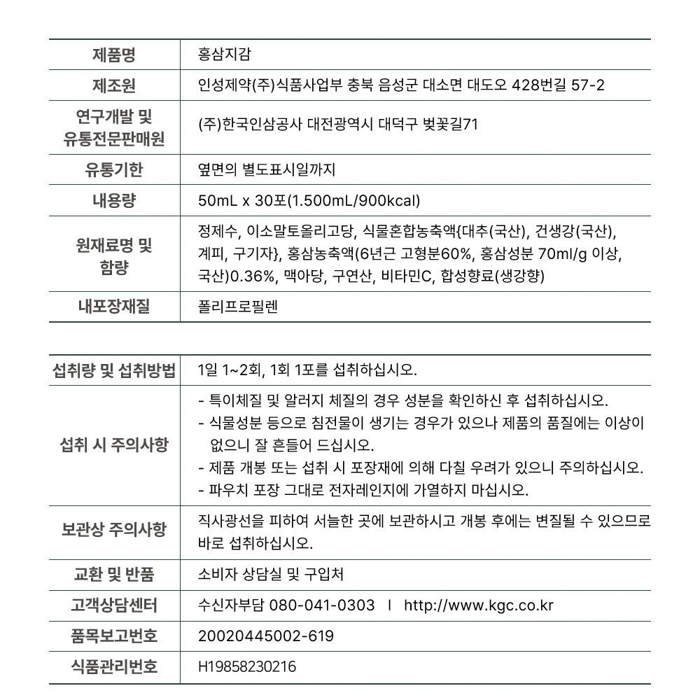 Red Ginseng Energy Shot 50ml*30 Packs (New Edition)