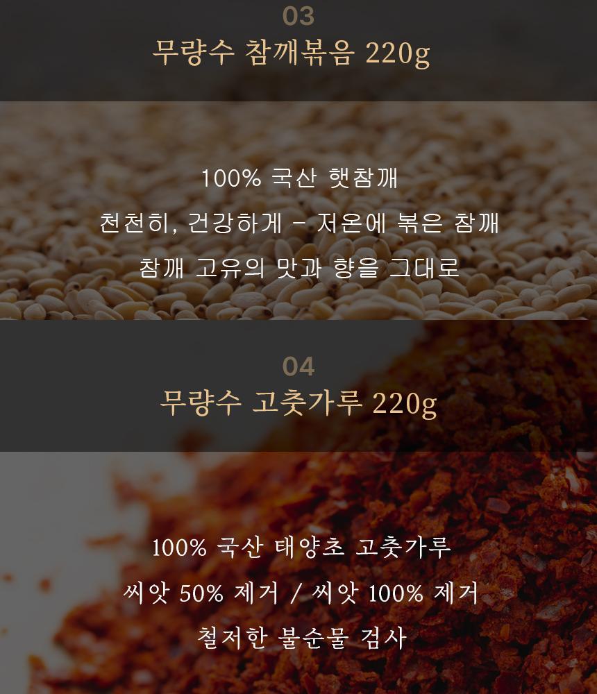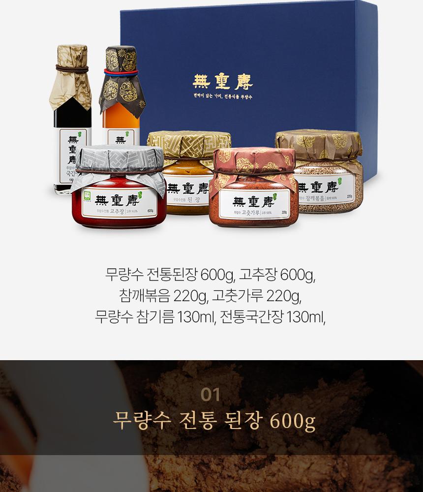 Soybean paste/red pepper paste 600g, red pepper powder/roasted sesame 220g, sesame oil/soup soy sauce 130ml