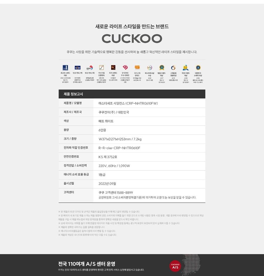 6-Cup Master Chef Silence IH Electric Rice Cooker CRP-NHTR0610FW