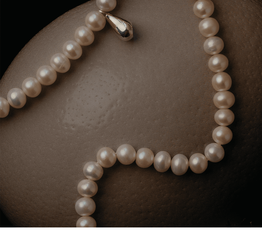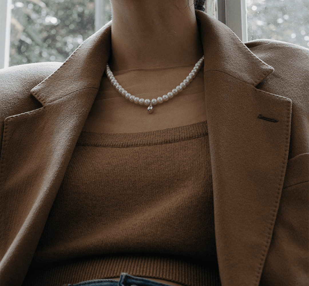 Cutting Eyedrop Pearl Necklace-Silver