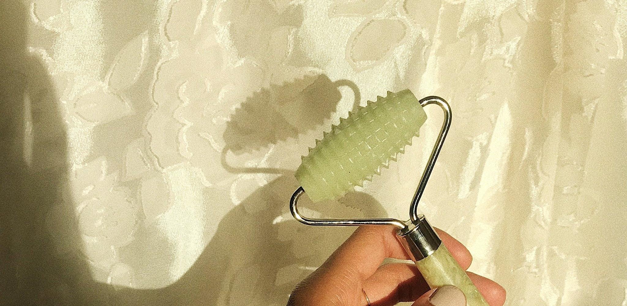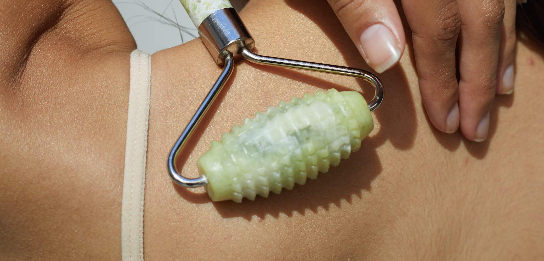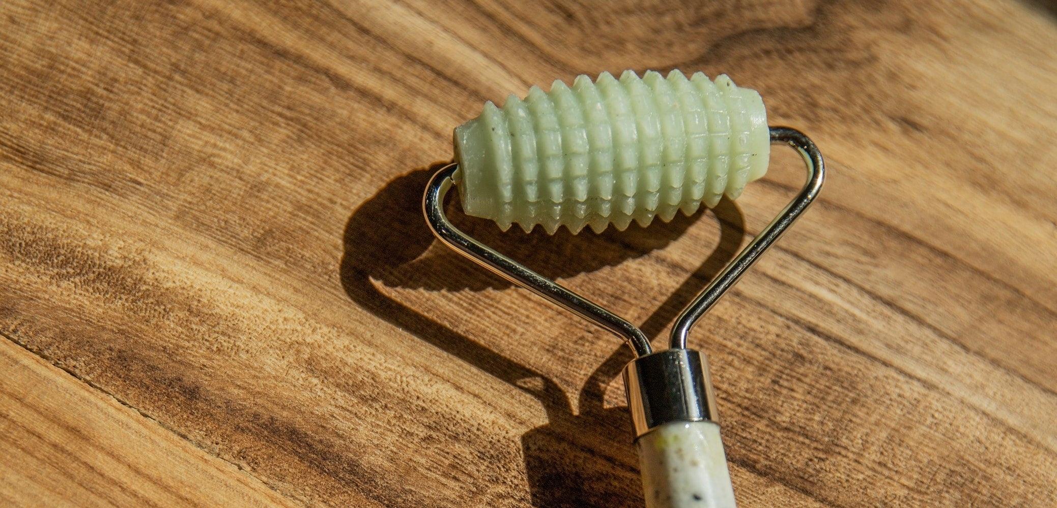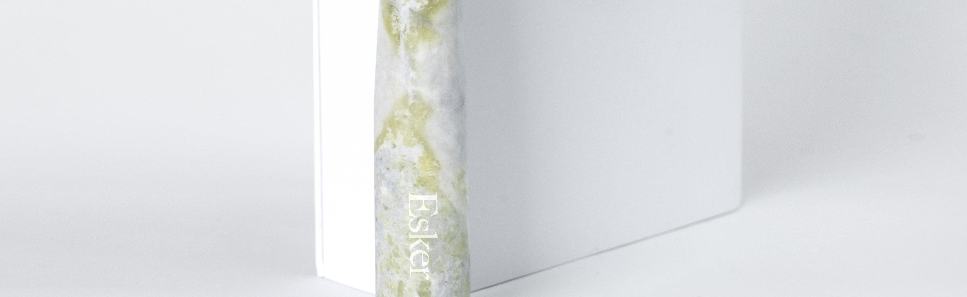 Esker’s Allover Roller is made up of a textured Xiuyan Jade roller and polished Xiuyan Jade handle to provide a deep and gentle self massage for the entire body. At 7” long and 3.25” wide Allover Roller’s texture is designed to break up fascia in the top layers of the skin to reduce tension and puffiness. This unique tool also encourages a deeper penetration of Esker’s Body Oils. With continued use, the Allover Roller reveals a renewed skin that is firm, soft, and glowing.