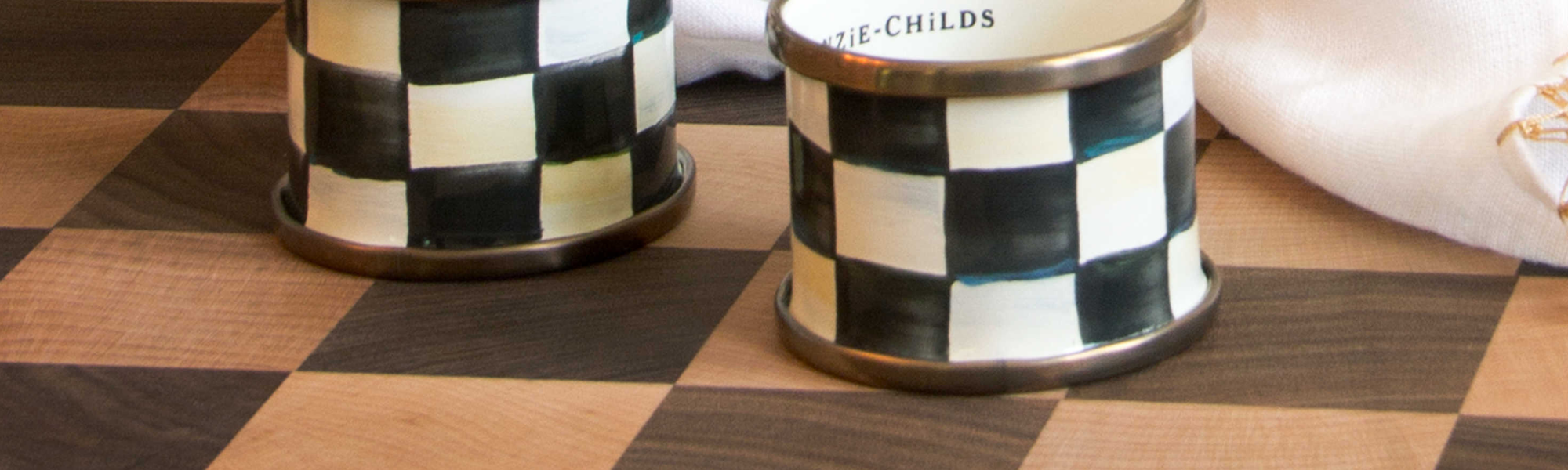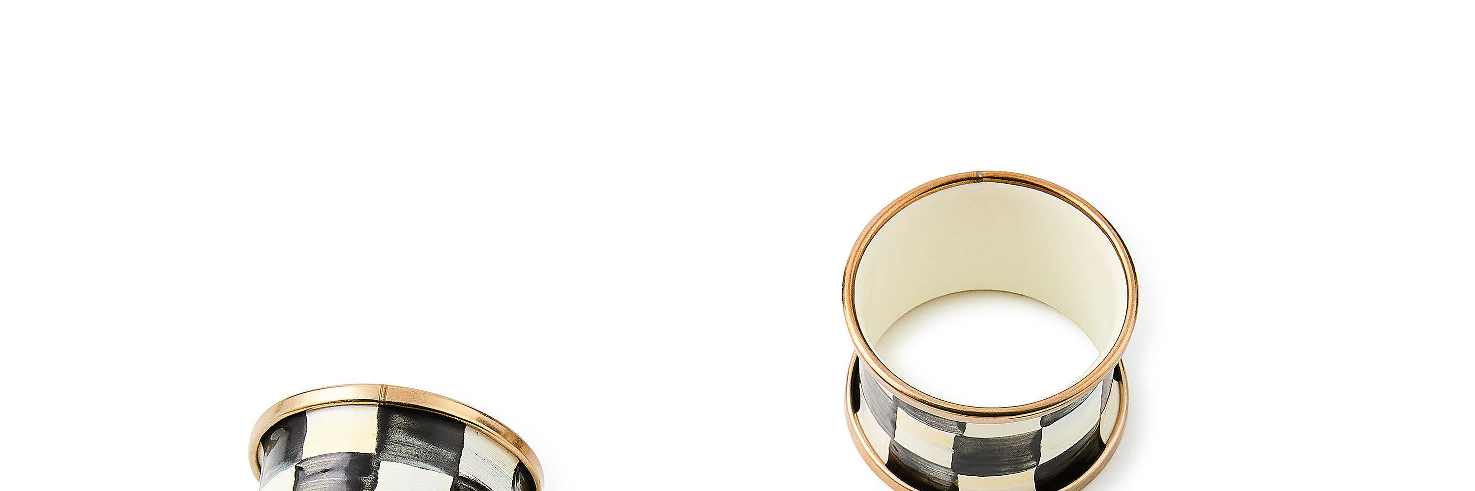 Add these Courtly Check Enamel Napkin Rings at each place setting! Hand-painted, with a bronzed stainless steel rim, the boxed set of four makes a great hostess gift.
