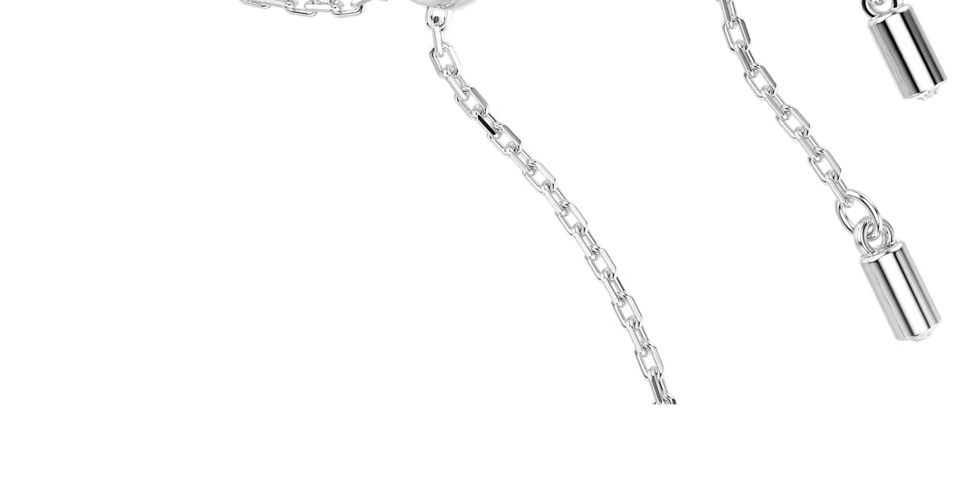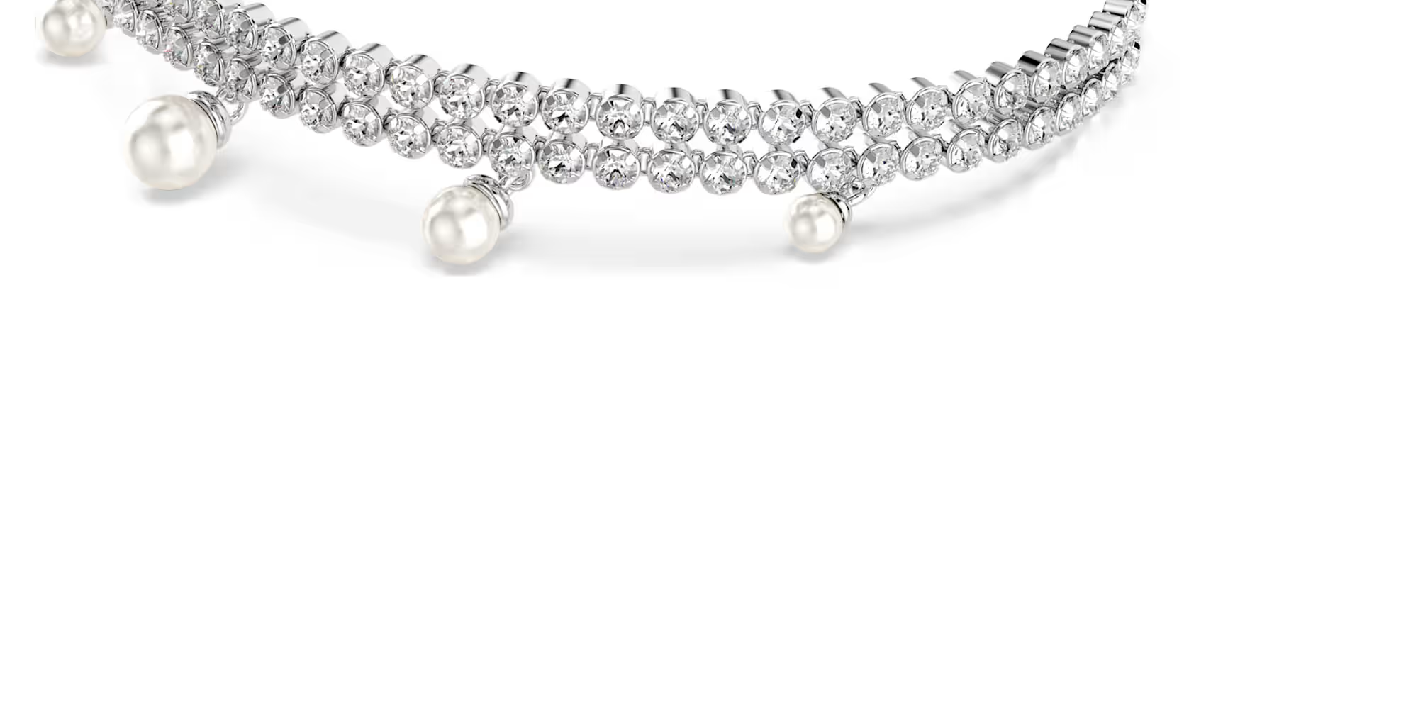 Discover a pure expression of elegance in this refined bracelet. Easily adjustable with a sliding ball closure, the rhodium plated design features two rows of cupchain, set with clear Swarovski Zirconia in round cuts. An adornment of Swarovski Crystal Pearls is then added below for a sensational look of luxury. Pair this bracelet with the matching choker to create your own expressive combination.