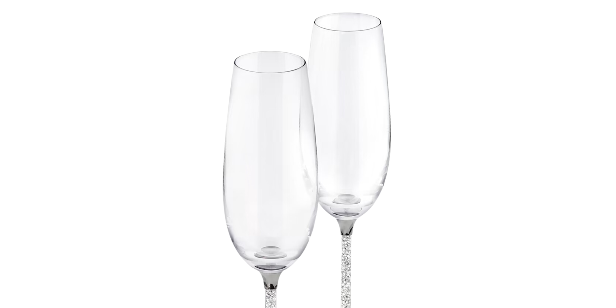 Delicate, elegant, and very festive, this is a set of two flutes for very special occasions. The clear crystal that fills the stems and the faceted clear crystal base of each of these adds an element of romance to any evening - making it a touch more special. Includes a set of 2, each measures 10" x 2.625" x 2.625".