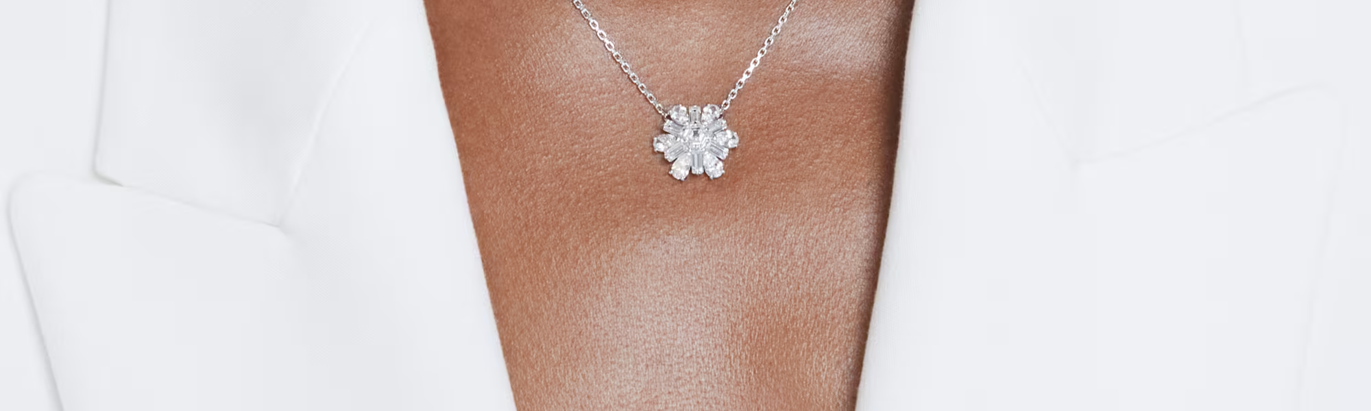 Infuse your look with nature’s undeniable beauty. Suspended from an elegant chain, this rhodium plated piece features a snowflake motif crafted from a glistening array of clear prong-set Swarovski Zirconia. An ice-inspired design that is sure to spark your creativity.