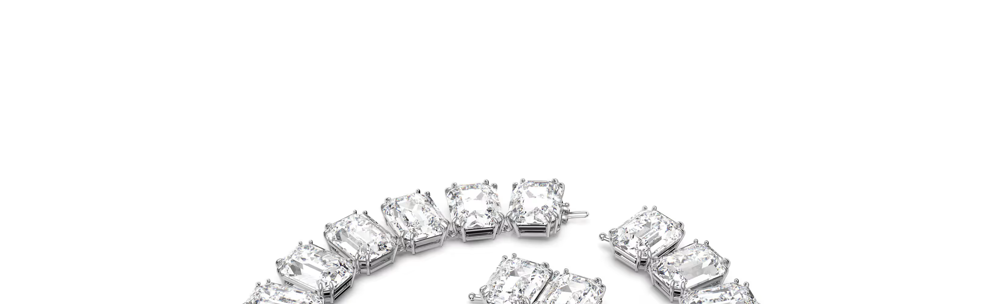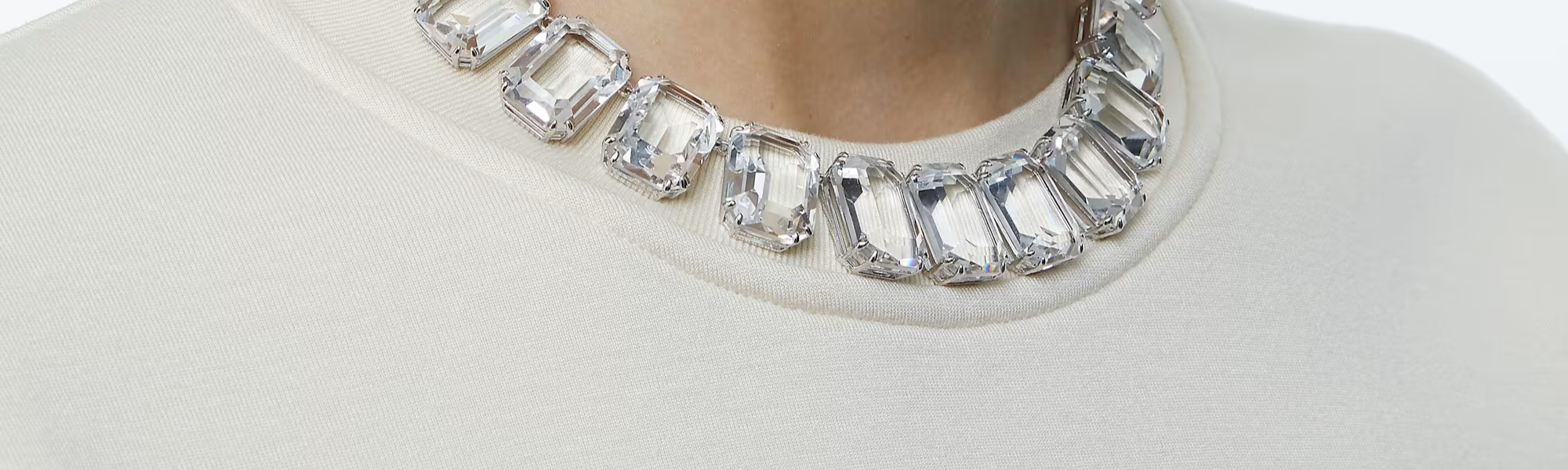 An elegant wardrobe essential, this clear crystal necklace is perfectly crafted with uniform octagon cut crystals on a silver tone plated prong setting and finished with a hidden fastening. Team with coordinating earrings from the Millenia family and a black dress for evening, or wear solo with a simple white t-shirt for daytime adornment with an ultramodern twist.