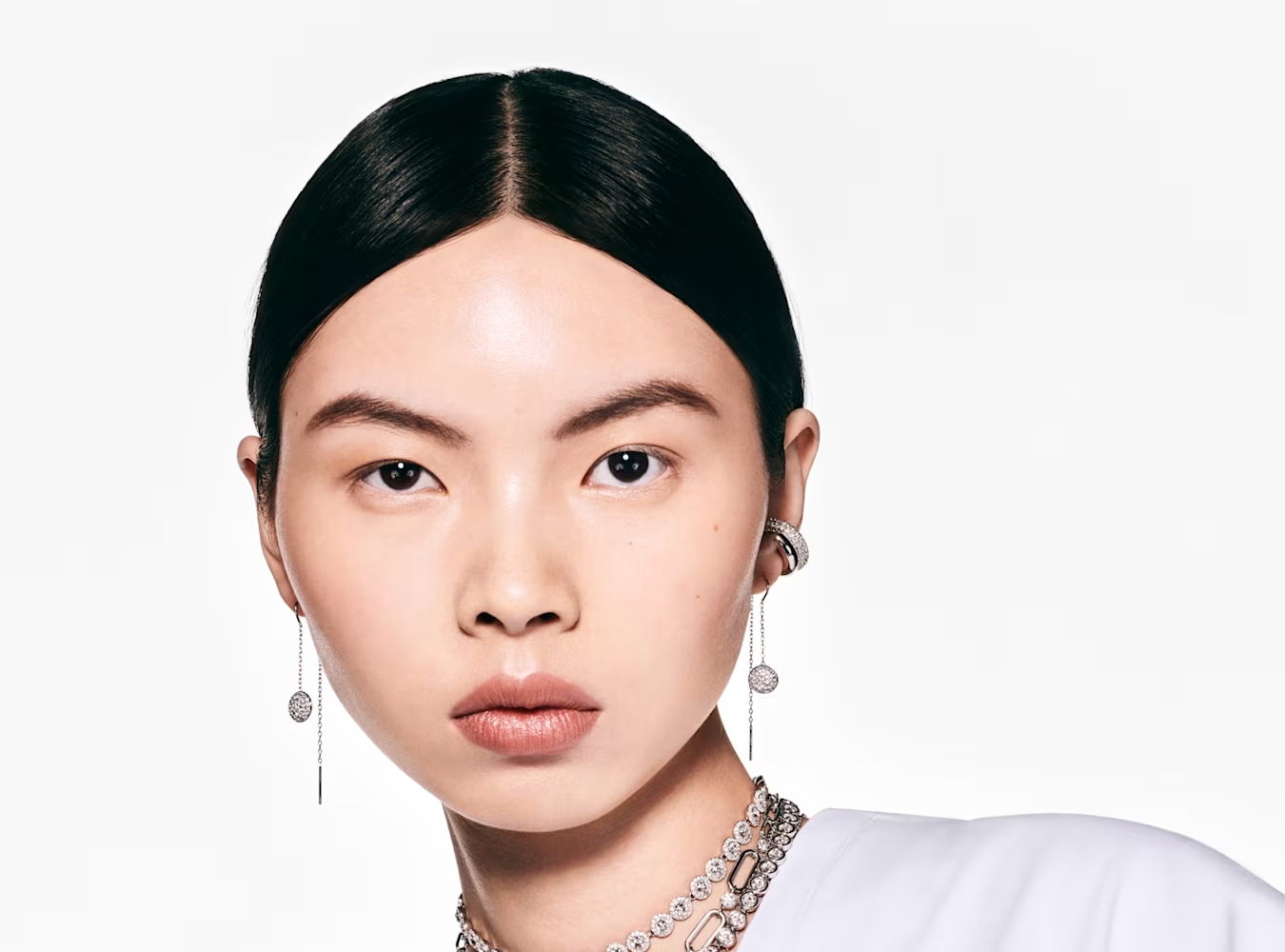 Inspired by the cosmos, these dazzling Sublima earrings will fill your style with wonder. Each piece features a dangling chain on either side, along with a domed meteor motif, which is beautifully adorned with clear round crystals.