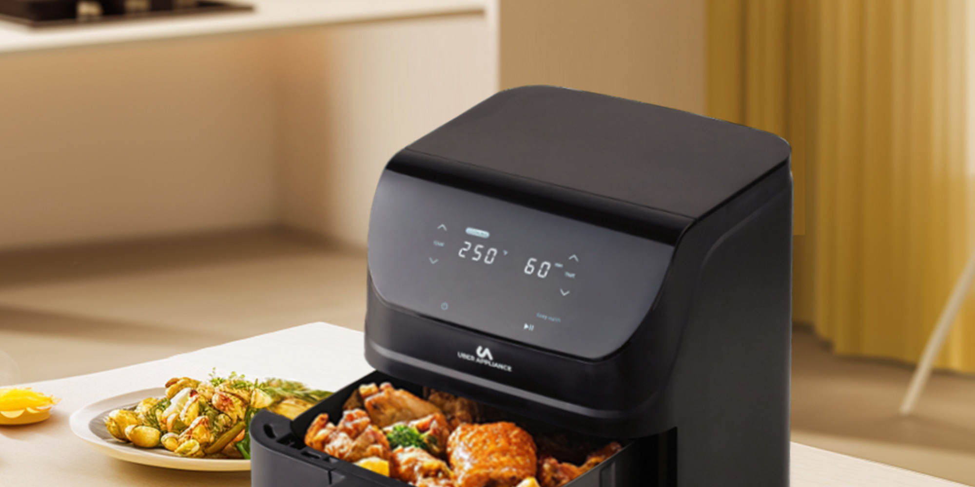 The Uber Air Fryer XL is one of the best air fryers on the market, perfect for any household with its roomy 5 quart basket, you can air fry a whole chicken. Features an easy to use touch display for temperature and time setting with temperatures ranging from 150F to 400F, as well as several pre-set cooking temperatures. The odorless air fryer provides a higher quality air fryer taste.