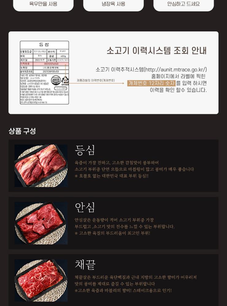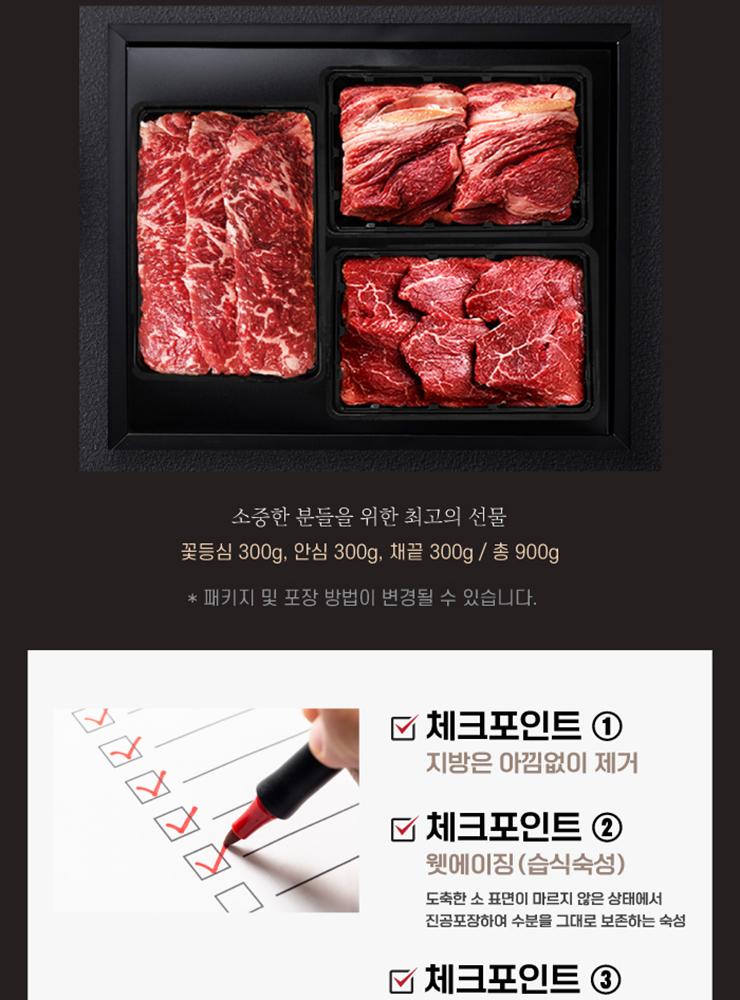 1等級 韓牛 限定企画 3P (900g) (リブロース, ヒレ, ストリップロイン)