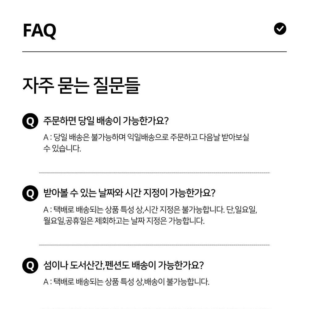 • 配送は、支払い及び配送情報の入力完了日から営業日基準で平均3-5日以内に完了されます。(週末、祝日除く)注文量が多い場合、時間がもう少し掛かる場合があります。