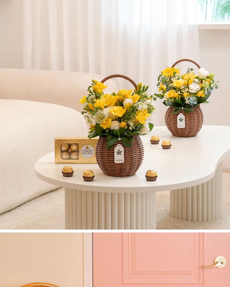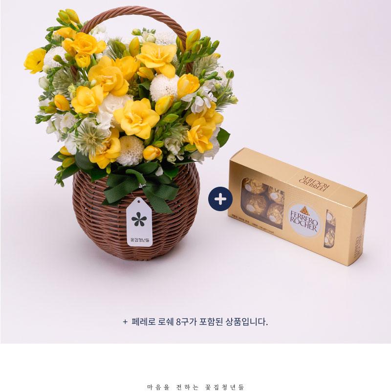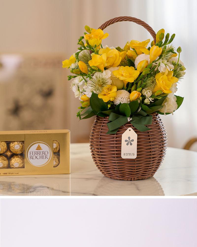 フリージア 季節のフラワーバスケット+フェレロ ロシェ 8個
