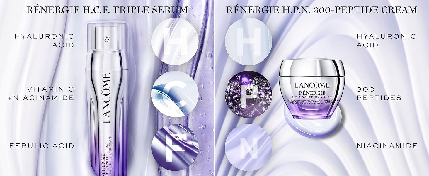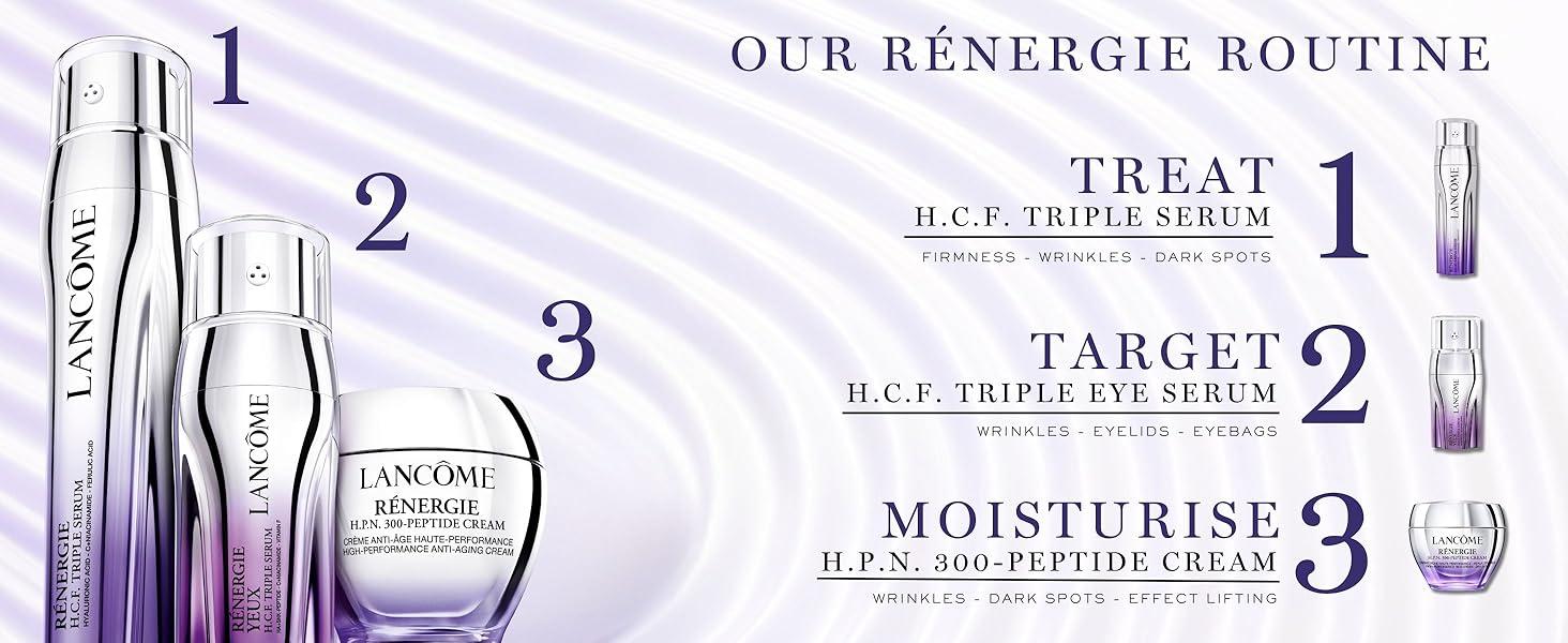 ランコムの「レネルジー C.R.x トリプルセラム レチノールセット」で、輝きあふれる肌体験を。レネルジー C.R.x トリプルセラムが生き生きとした印象の肌へ導き、レネルジー H.P.N. UVMUNE SPF 50 クリームが透明感をプラス。さらに、レネルジー アイクリームが目元の輪郭を美しく整えます。