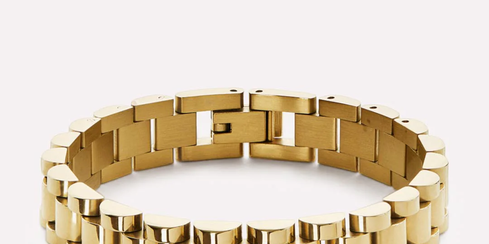 タイムレスでひねりを効かせたオーラ ウォッチ ストラップ ブレスレットは、クラシックな時計バンドの気品を日常のジュエリーコーディネートにもたらします。仕上げは2種類。洗練されたシルバートーンのロジウムメッキ、または豊かなゴールドの輝きを放つ14金メッキのステンレススチール。いずれのブレスレットも高級時計に着想を得た滑らかなリンクデザインを採用しています。単体でもお好みのチェーンとの重ねづけでも映え、予備のコマが付属しているため、手首にぴったり合うように調整できます。