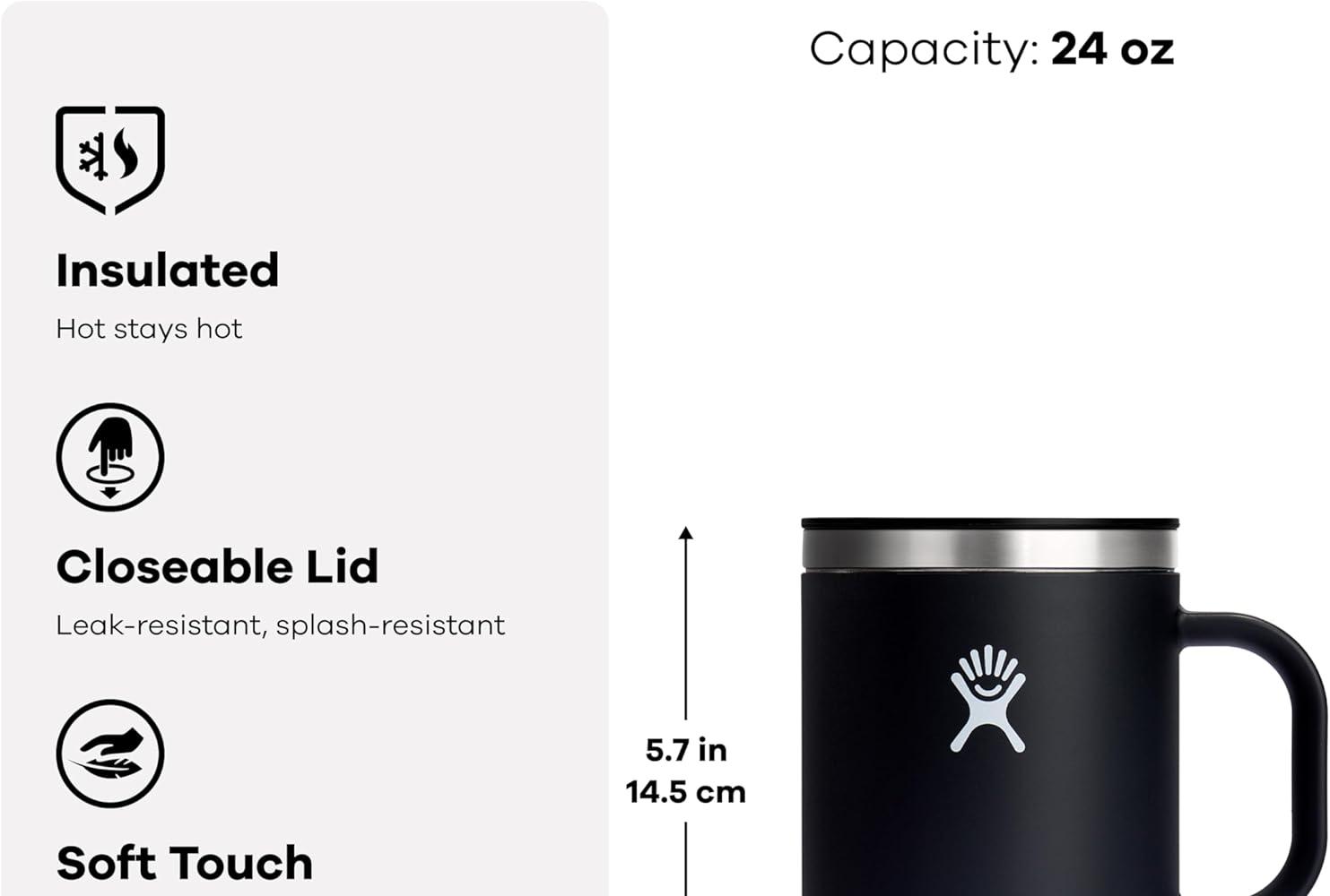 • 断熱マグ:ハイドロフラスクのステンレス製断熱マグは、飲み物を長時間温かく保ちます。最適な一杯分のサイズで、閉じられる漏れ防止・飛び散り防止のリッド付きです。