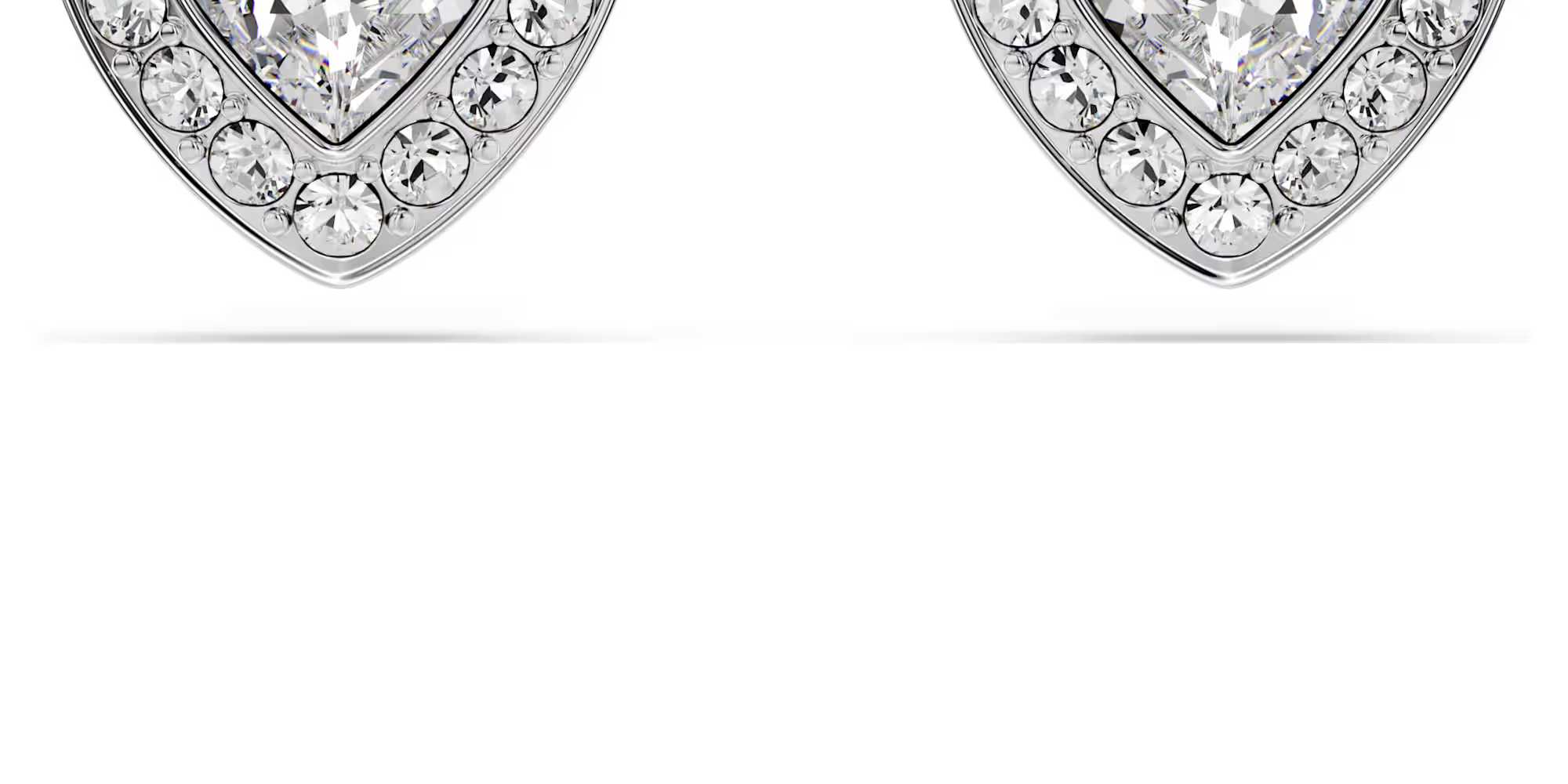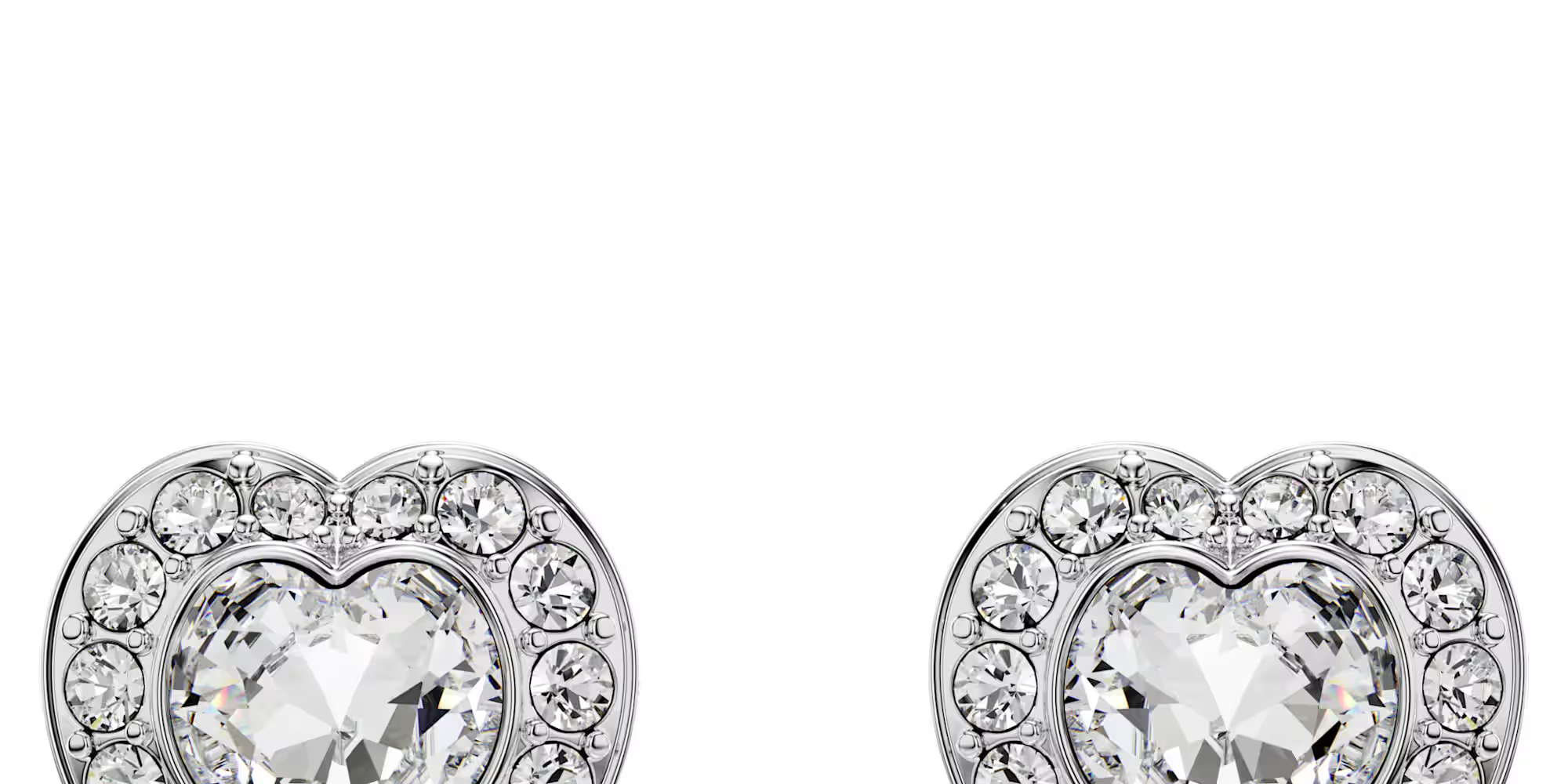 ふたつのハートがひとつになる、喜びに満ちたスワロフスキーのスタッドピアスのペアです。各ロジウムコーティングのピースは、ハート形のクリスタルをきらめくクリアパヴェのハローで縁取っています。おそろいのペンダントと合わせれば、輝く愛の贈り物になります。