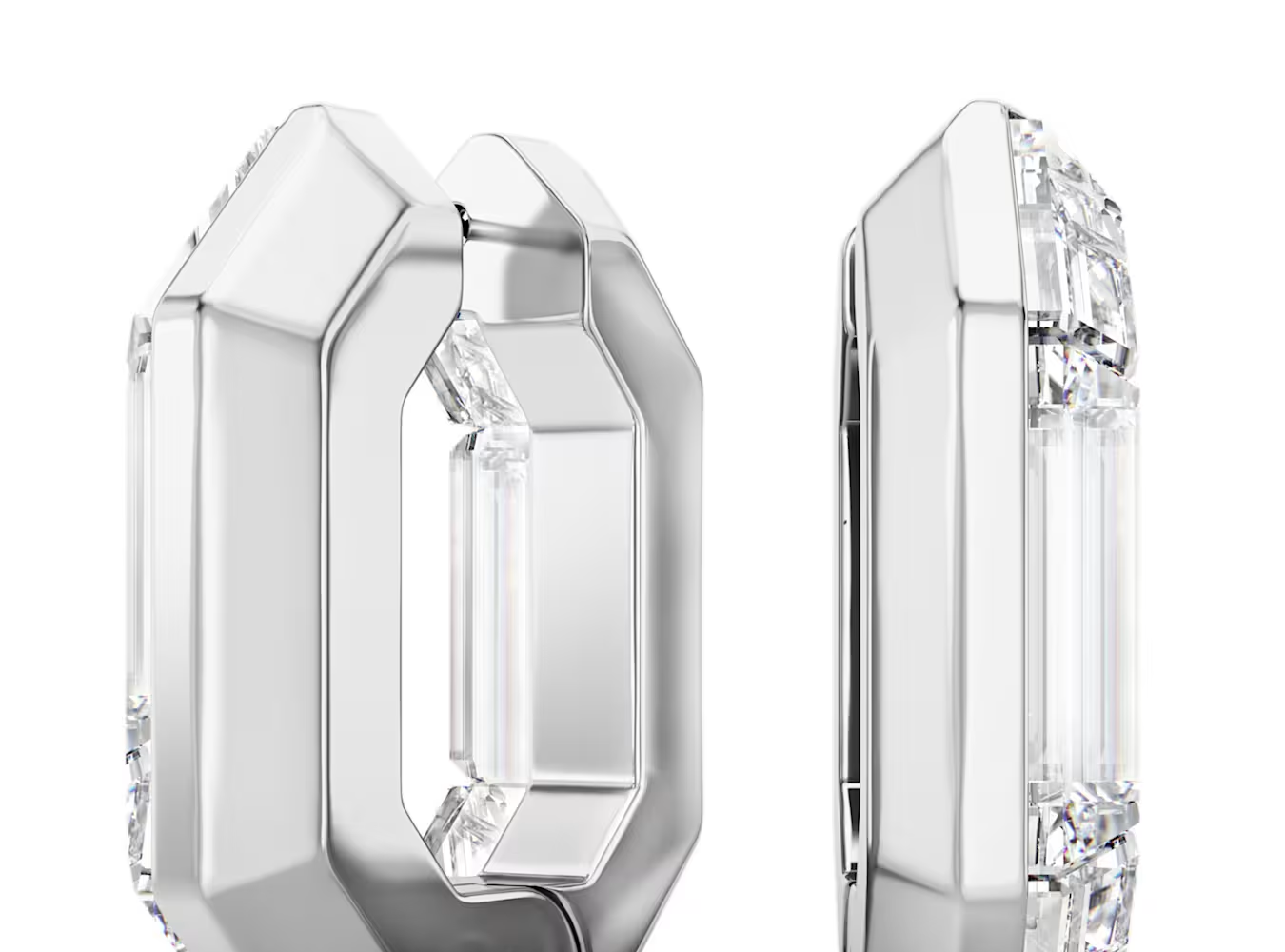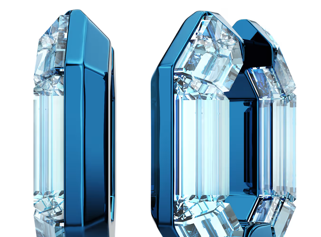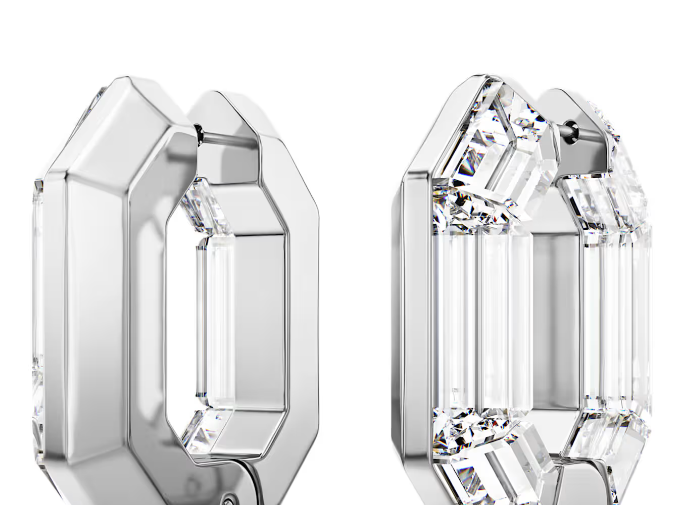クリスタルがあしらわれた各ピースは、片面にカラーメタルを備え、さりげないポスト留めと開閉しやすいヒンジ機構を採用しています。