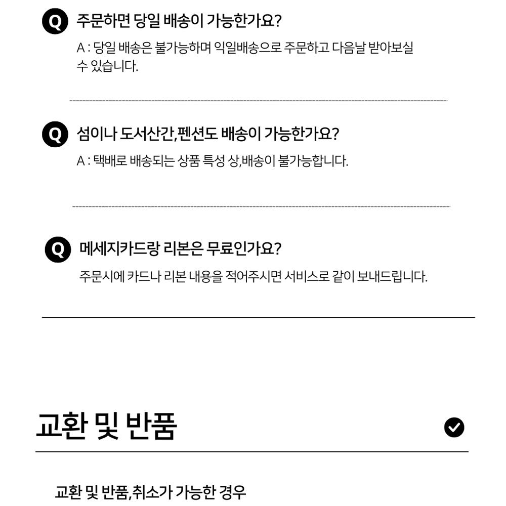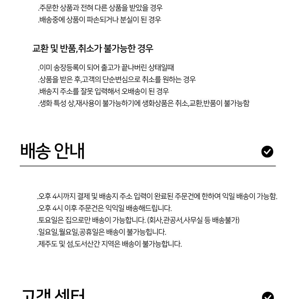 • 제주 및 도서산간 지역은 배송이 불가하여 주문이 자동 취소됩니다. 양해 부탁드립니다.