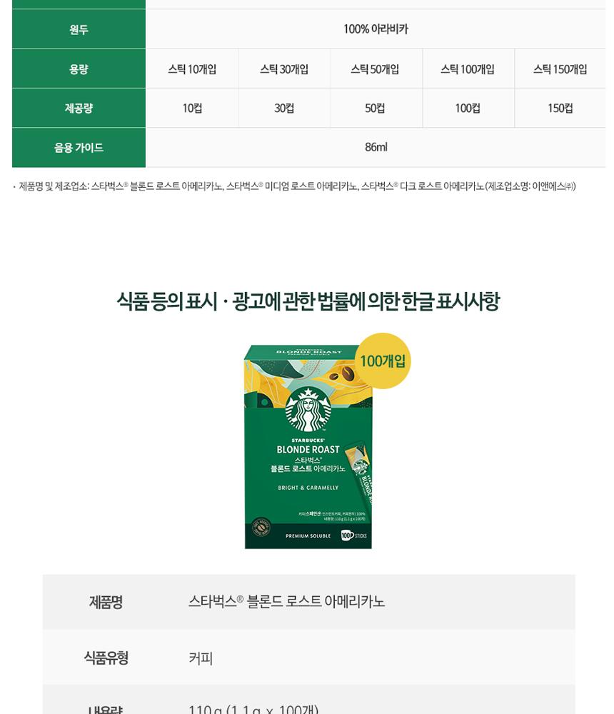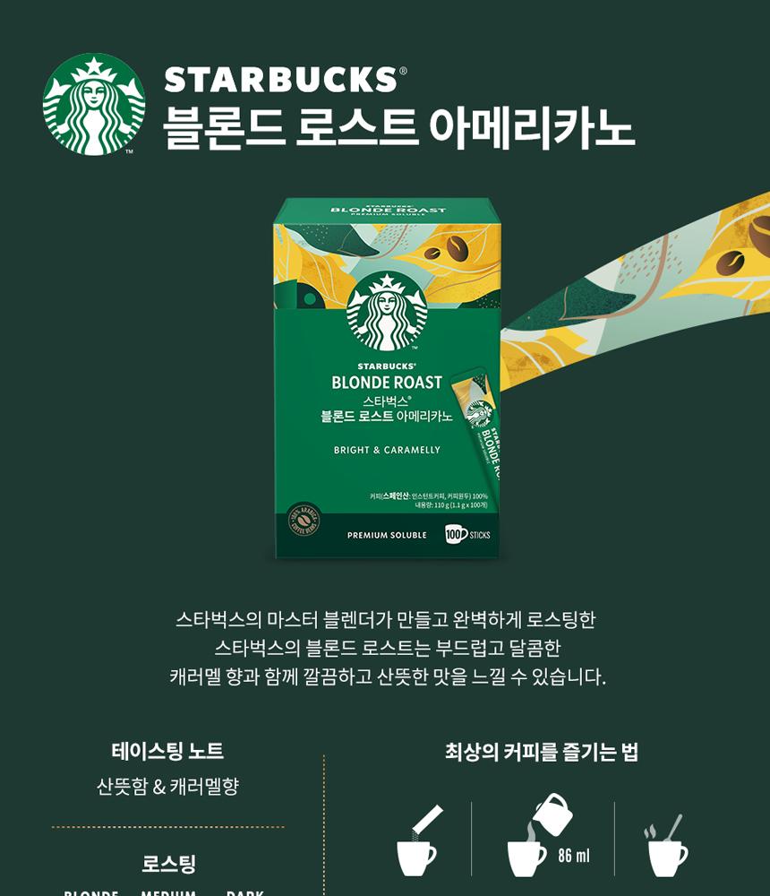 블론드 로스트 아메리카노 원두커피믹스(100T) + 스타벅스 머그컵 랜덤 증정