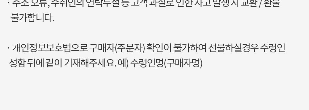 • 제품에 이상이 있을 경우, 배송 완료일로부터 7일 이내에 소다기프트 고객지원팀(support@sodagift.com)으로 문의해 주시면 환불 또는 교환을 도와드리겠습니다.