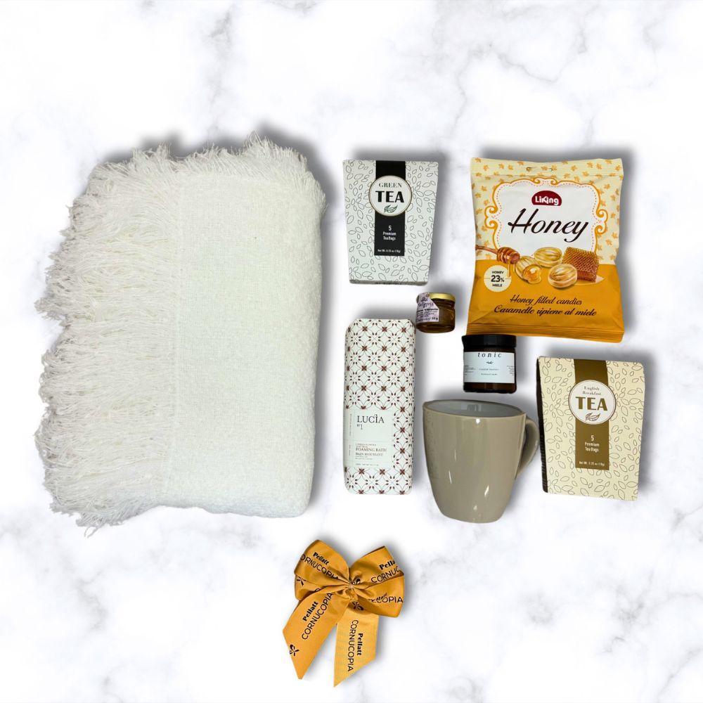 당신을 대신해 필요한 모든 것을 세심하게 준비했습니다. 포근한 담요, 머그컵, 차, 천연 꿀, 그리고 마음을 편안하게 해주는 향초까지, 모두 사랑스럽고 재사용 가능한 바구니에 정성껏 담았습니다. 따뜻한 정성과 사랑이 필요한 모든 이에게 완벽한 선물이 될 것입니다.