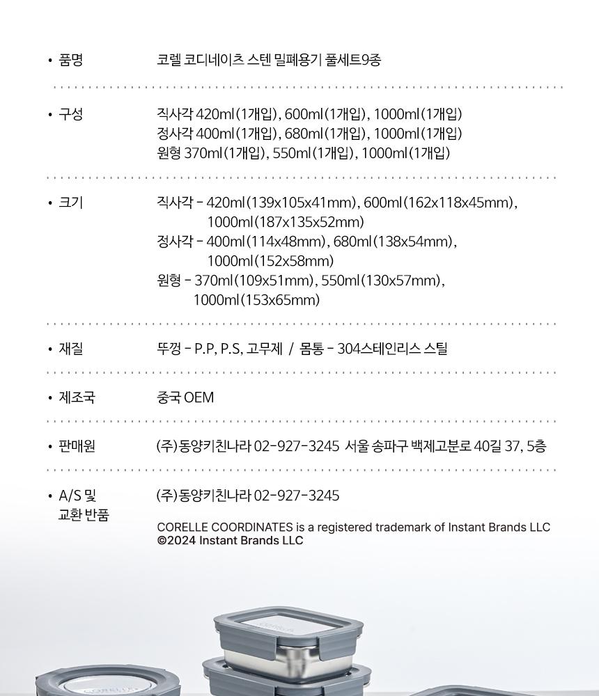 코디네이츠 스텐 밀폐용기 풀세트 9종