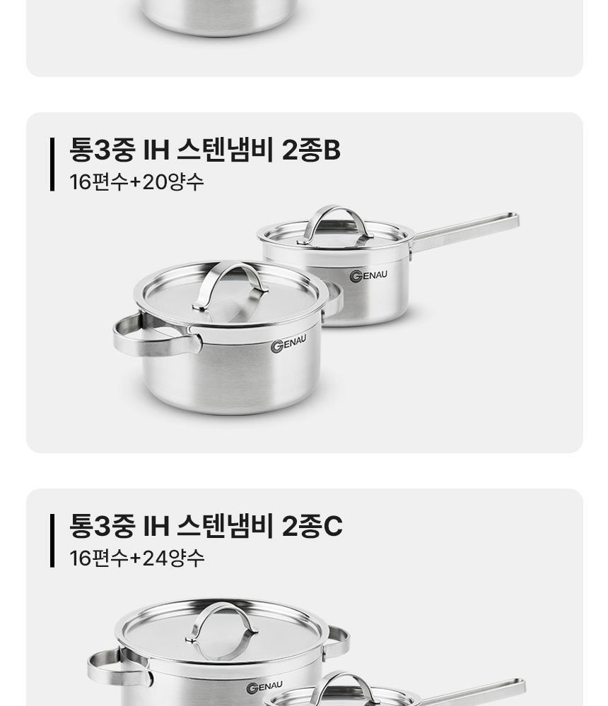 통3중 IH 스텐냄비 3종 (16편수+20양수+24전골)