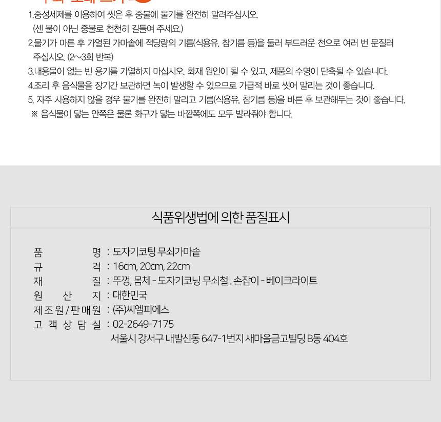 황토도자기코팅 무쇠솥 20cm