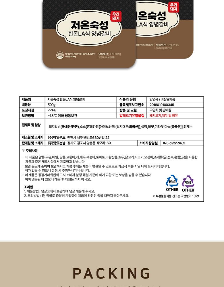 저온숙성한돈 LA식 양념갈비세트 2.0kg/500g*4팩/냉동