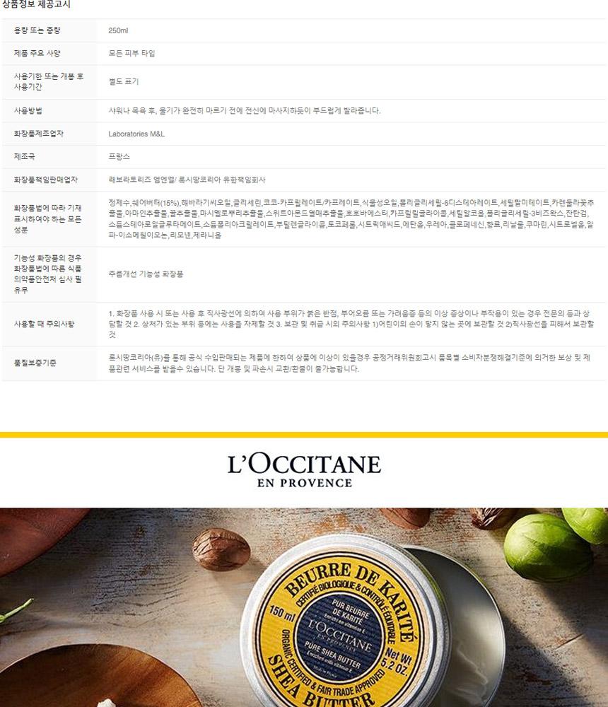 [록시땅]시어 버터 울트라 리치 바디 로션 250ml & 미니 퓨어 시어 버터 10ml 세트(케이스포장+쇼핑백증정)