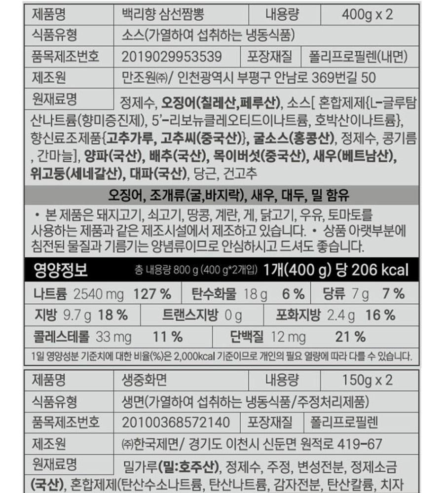 63 다이닝키트 백리향 삼선짬뽕 1.1kg(2인분) X 3팩(6인분)