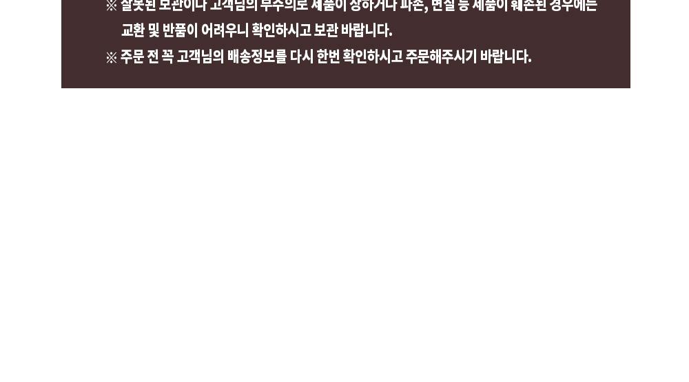• 배송은 결제 및 배송 정보 입력 완료일로부터 영업일 기준 평균 3-5일 이내에 완료됩니다. (주말, 공휴일 제외) 주문량이 많을 경우 시간이 조금 더 소요될 수 있습니다.