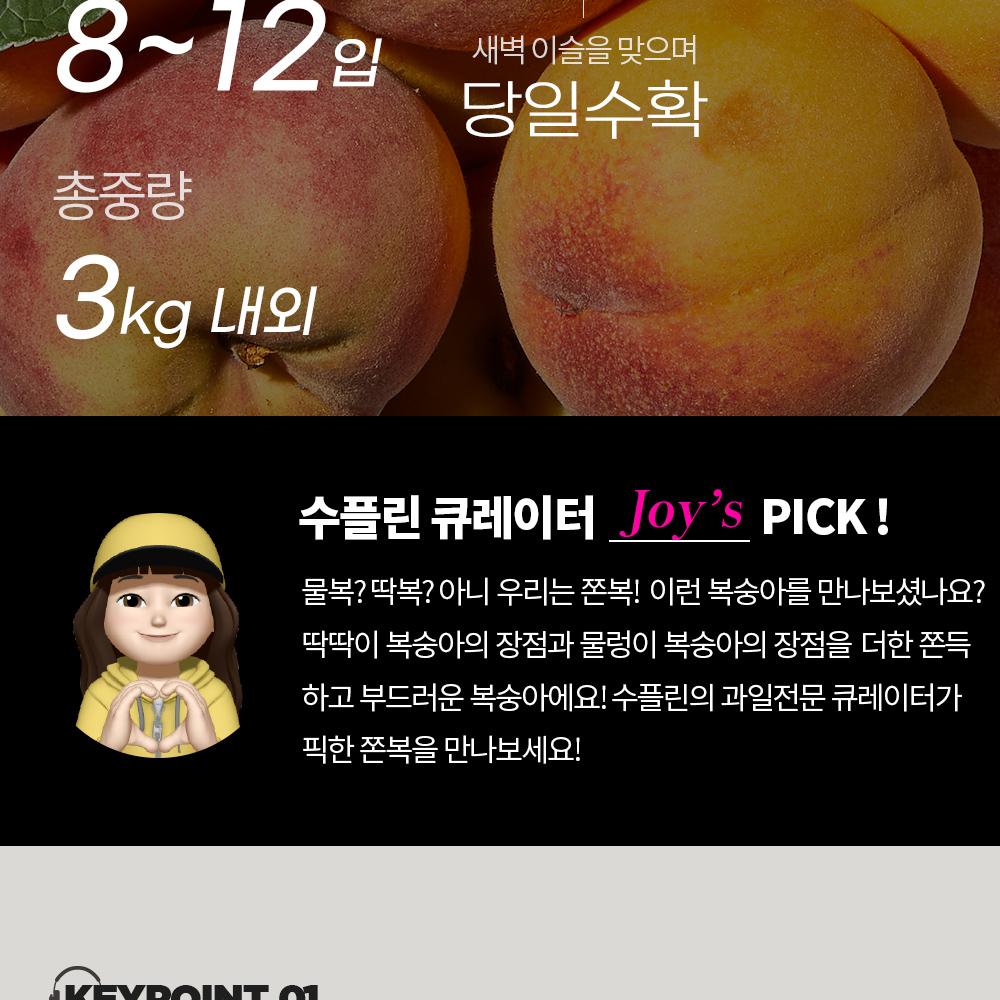 새콤달콤 여름의 시작을 알리는 백도 복숭아 3kg 이상 (총 8~12입)