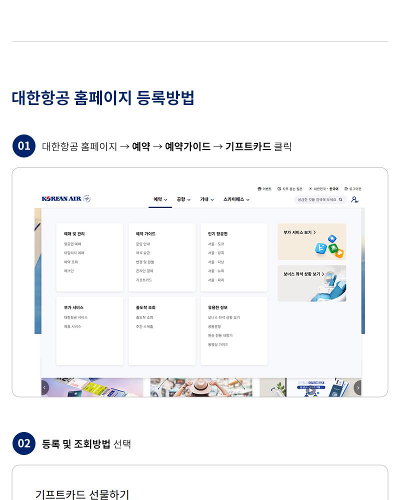 * 대한항공 홈페이지 : 예약 > 예약가이드 > 기프트카드 > 기프트카드 등록 및 조회하기