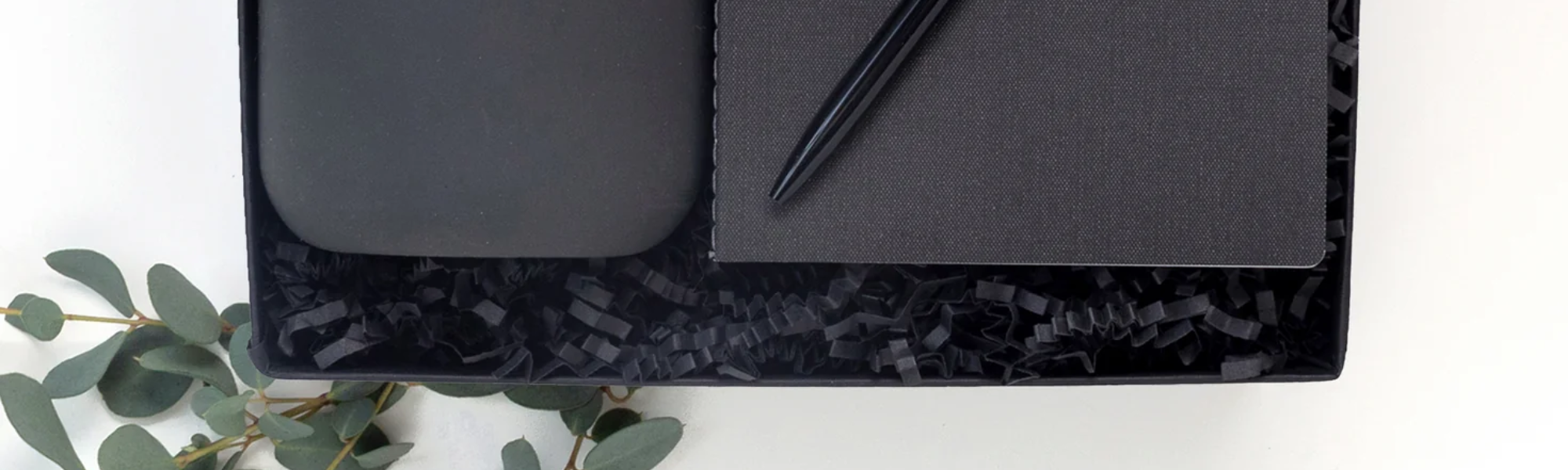 세련된 액세서리와 간식으로 작업 공간을 한층 업그레이드하세요. 감사 인사나 훌륭한 성과를 축하하기에 완벽한 제스처입니다! 얇은 무광 화이트 리본으로 묶은 고급스러운 블랙 종이 박스.