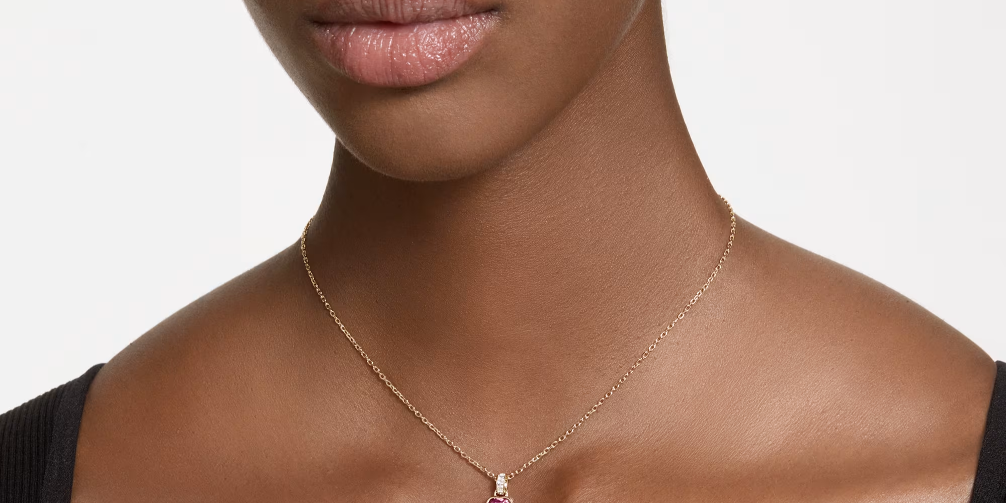 하트 모양 주얼리를 좋아한다면 크로마 패밀리의 이 펜던트는 컬렉션에 꼭 필요한 아이템입니다. 붉은 센터 스톤은 가장자리와 베일 부분에 사각형 클리어 크리스털로 장식된 골드 톤 도금 세팅에 놓여 있습니다. 끝부분의 라운드 스톤 디테일과 5센티미터 연장으로 마무리된 골드 톤 도금 체인에 아름답게 연결되어 있어, 매일 착용할 수 있는 제품으로 당신의 스타일을 완성하는 시그니처가 됩니다.