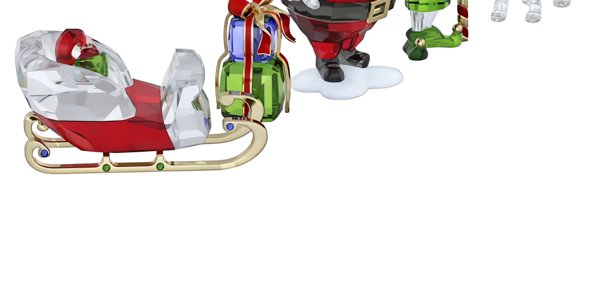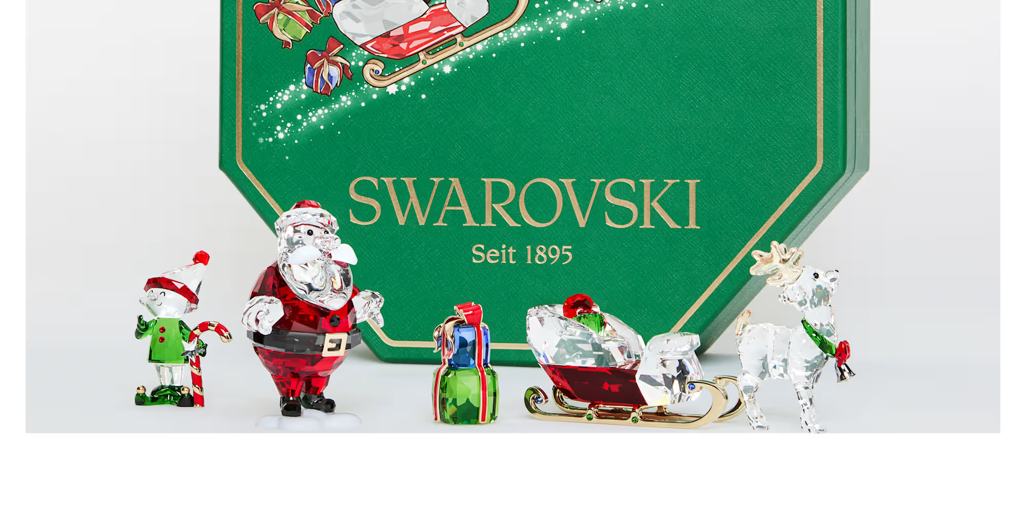 이 수집용 산타 스토리 세트로 축제의 마법을 완성하세요. 디스플레이에는 산타와 그의 썰매, 순록, 사랑스러운 요정, 리본으로 묶인 선물이 포함되어 있으며, 다양한 색상과 정밀 커팅된 패싯으로 생동감 있게 표현됩니다. 샴페인 골드 톤 메탈을 사용해 디테일에 화려함을 더했습니다. 전체 세트는 스와로브스키 130주년을 기념하는 특별 프레젠테이션 박스에 담겨 제공됩니다. 매년 열어 가장 소중한 어린 시절의 추억을 불러일으키세요. 장식용 오브젝트입니다. 장난감이 아닙니다. 만 15세 미만의 어린이에게는 적합하지 않습니다.
