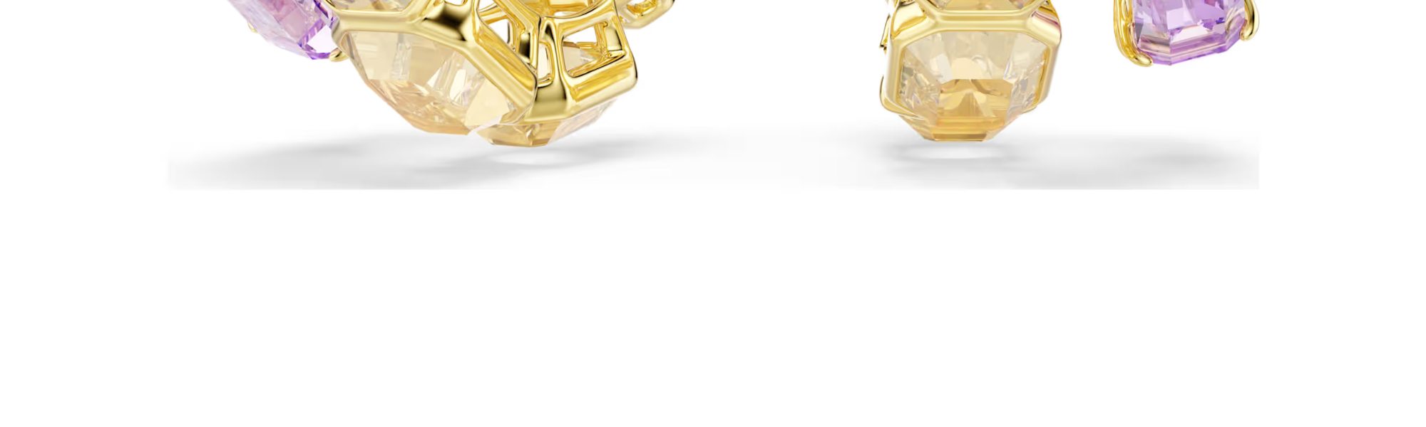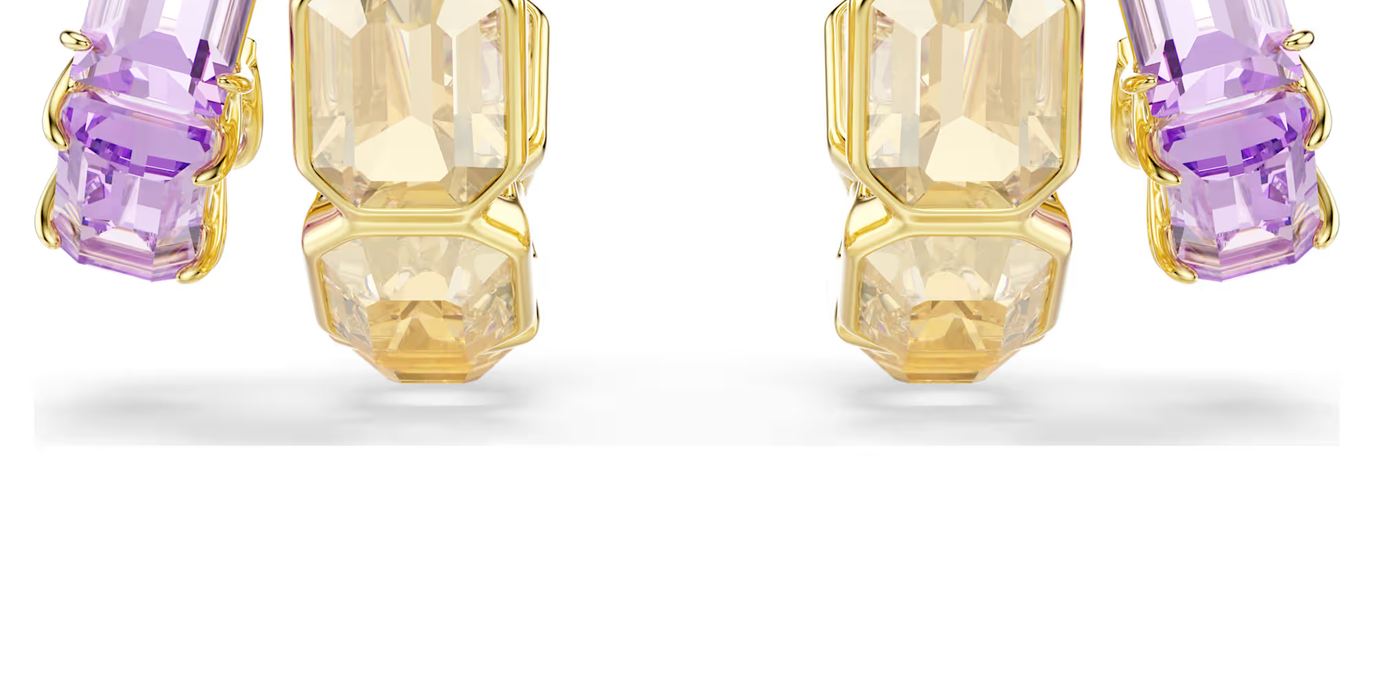 이 다채로운 색상의 귀걸이는 완벽한 글래머를 위한 최적의 선택입니다. 각 골드 톤 도금 디자인에는 비대칭 미니 후프 두 개가 있으며, 베젤 세팅의 팔각형 캐러멜 크리스털과 프롱 세팅의 퍼플 크리스털이 장식되어 있습니다. 대비가 조화를 이루어 대담한 룩을 완성하는 아름다운 믹스입니다. 같은 라인의 매칭 아이템과 함께 착용하면 효과가 더욱 돋보입니다.